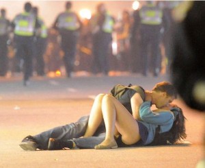 Trovare il tempo di baciarsi mentre ci sono tafferugli e celerini è davvero sconvolgente.